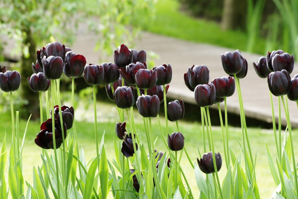 Тюльпани Queen of Night можна висаджувати навесні, і якісні цибулини все одно здатні порадувати красивим цвітінням уже в цьому сезоні. Після посадки в прогрітий ґрунт вони швидко вкорінюються та одразу спрямовують сили на формування міцних пагонів і бутонів.